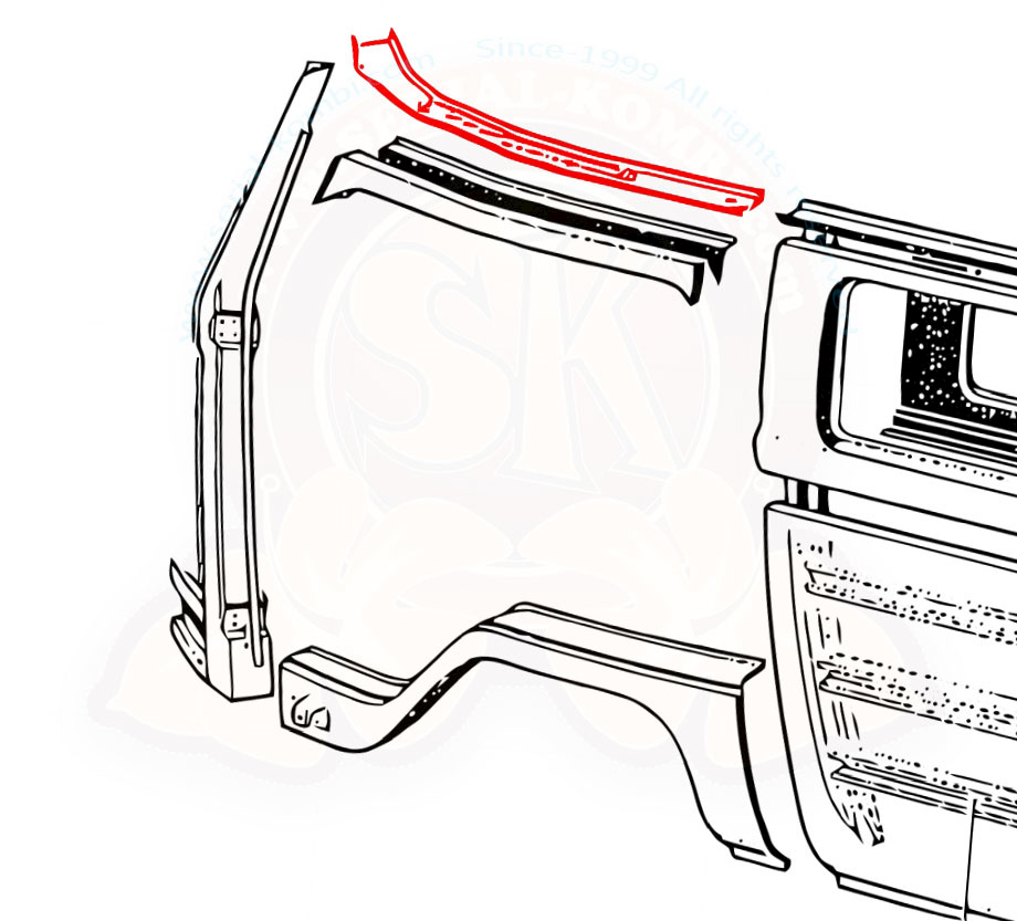 Chapa de canaleta del techo, ángulo delantero izquierdo 3/1955-7/1963