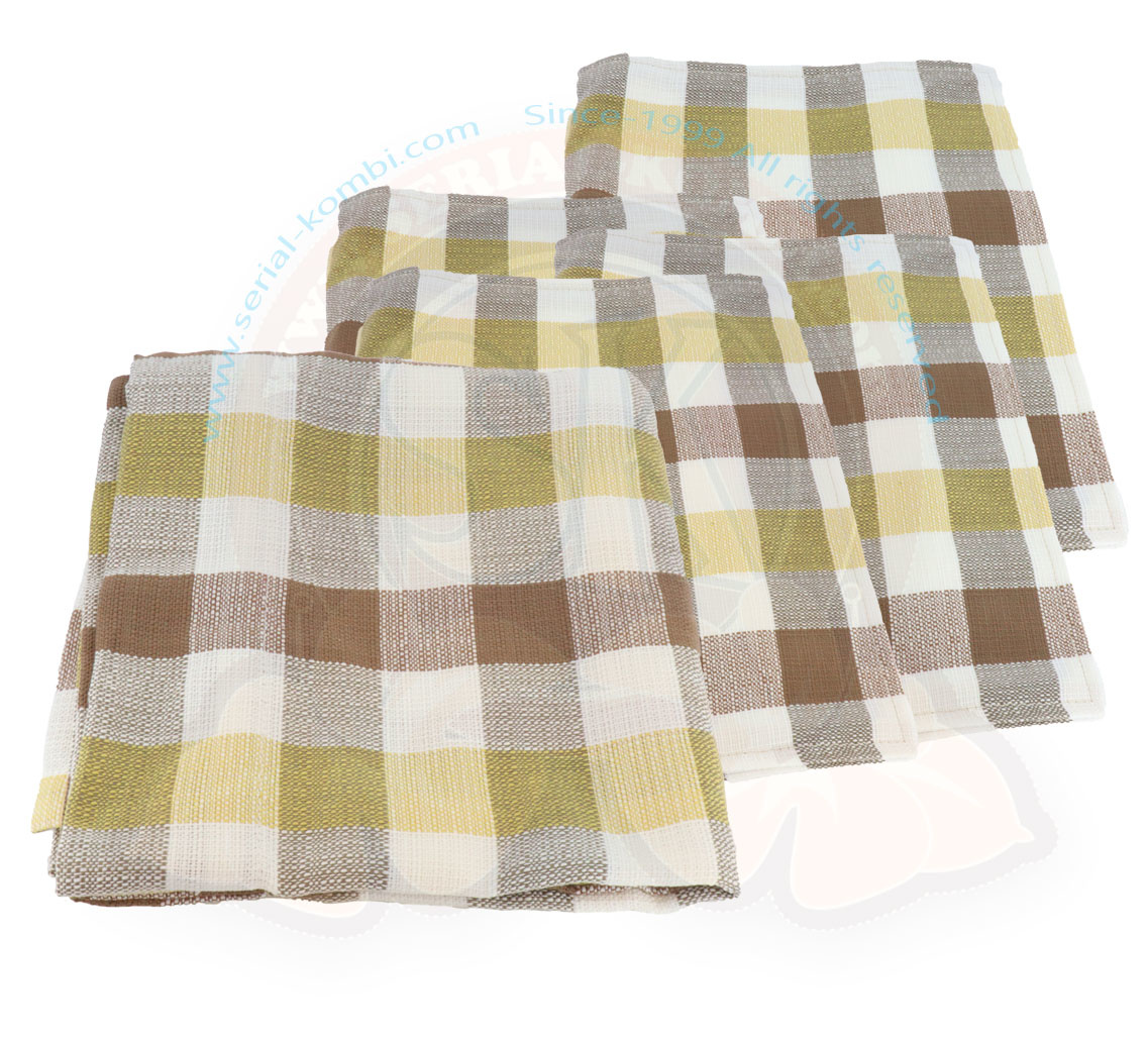 Cortinas, set de 15 piezas en tela de cuadros, amarillo/marrón/blanco para 11 ventanas, Westfalia 1950-7/1967