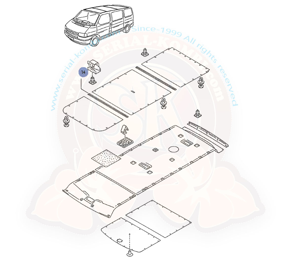 Cubierta de la junta de acabado del revestimiento del techo, con clips de fijación T4 9/1990-6/2003 Gris (4YX)