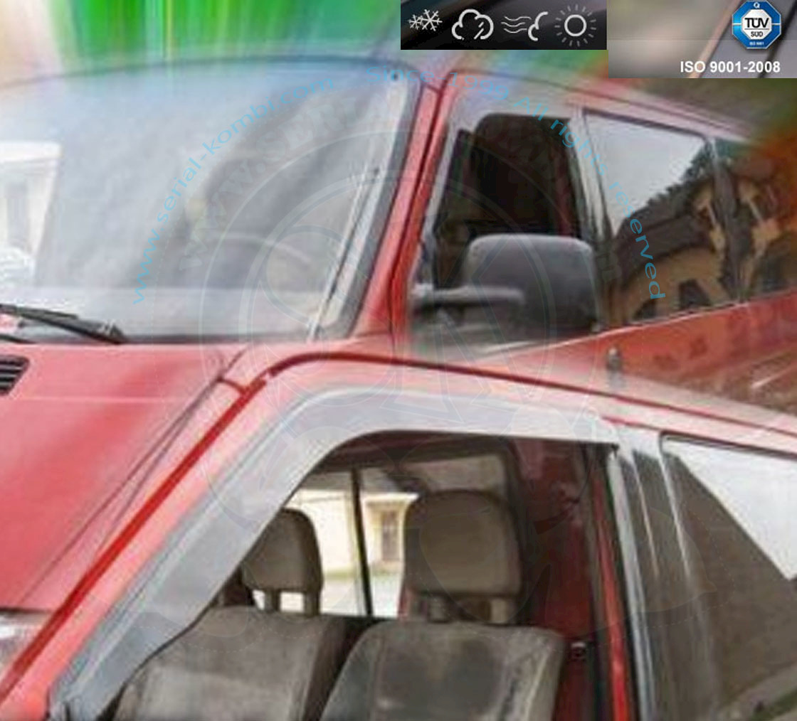 Deflectores de aire y antilluvia de puertas delanteras, en plástico ahumado y autoadhesivo, el par T4 9/1990-6/2003 apto para levantavidrios eléctricos