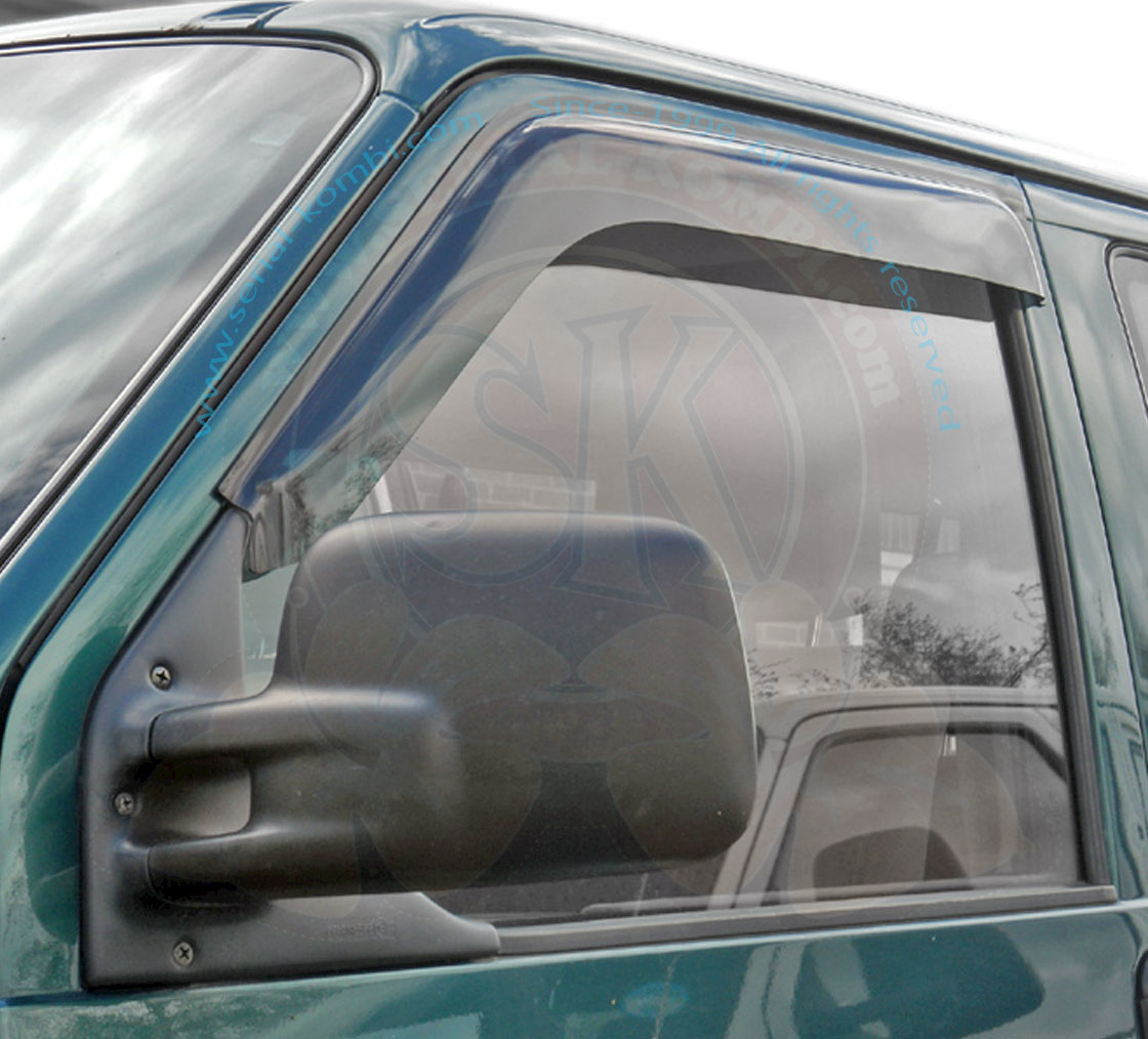 ATENCIÓN, estos deflectores son ADHESIVOS y están fijados EXTERIOR, en el marco de la puerta. Son adecuados para T4 con elevalunas eléctricos.