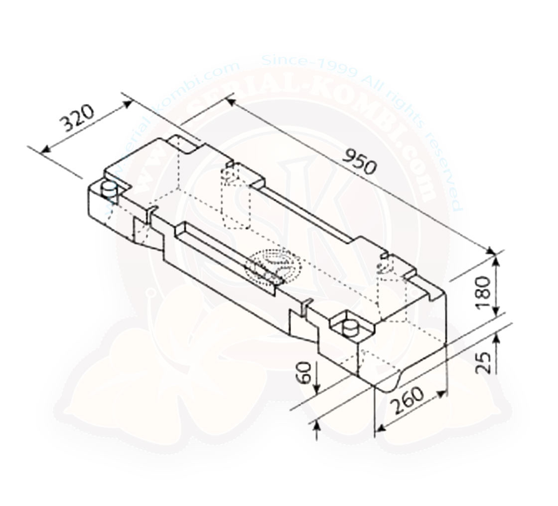 Depósito de agua exterior bajo chasis, plástico alimenticio 45 ltrs. 95 x 32 x 20,5 cm de alto 5/1979-7/1992