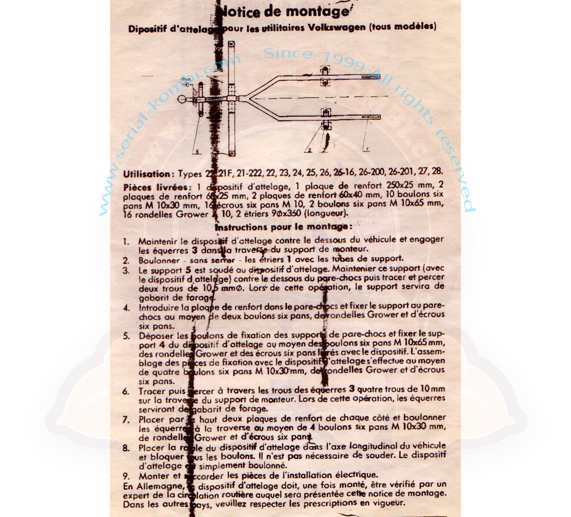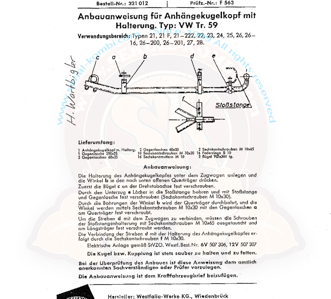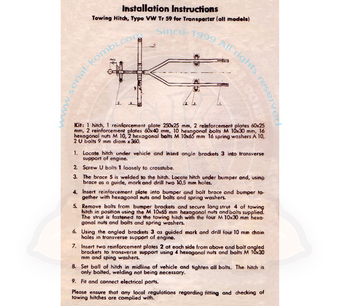 Enganche de remolque opcional de origen con soportes, SO23, SO33, SO34, SO42 Westfalia 1950-7/1967