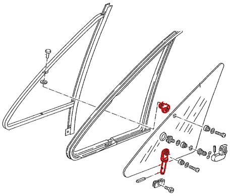 Escuadras y ejes de deflectores de puerta delantera, ABS plástico negro 5/1979-7/1992 4 piezas