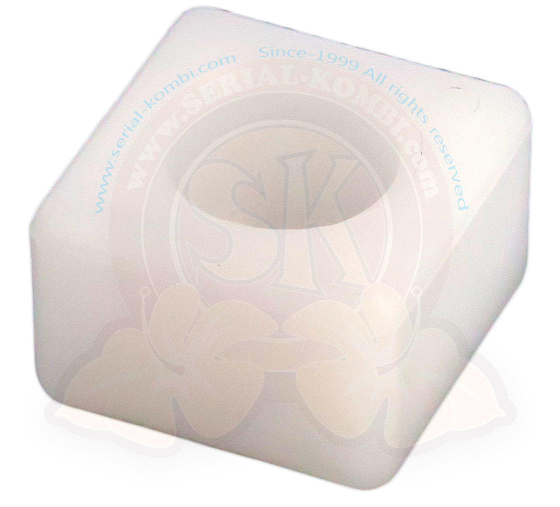 Si Ud. posee una FURGONETA de estos años, verifique que este presente esta guía en plástico que se encuentra sobre la pata en escuadra, la cual guía la puerta en el carril superior.. Si no existe que la rótula en metal, quiere decir que la guía en nailon desapareció, por lo tanto su puerta trabaja mal. Solamente un 20% de los Transportadores de esos años poseen todavía esa guía, siendo esta muy importante.