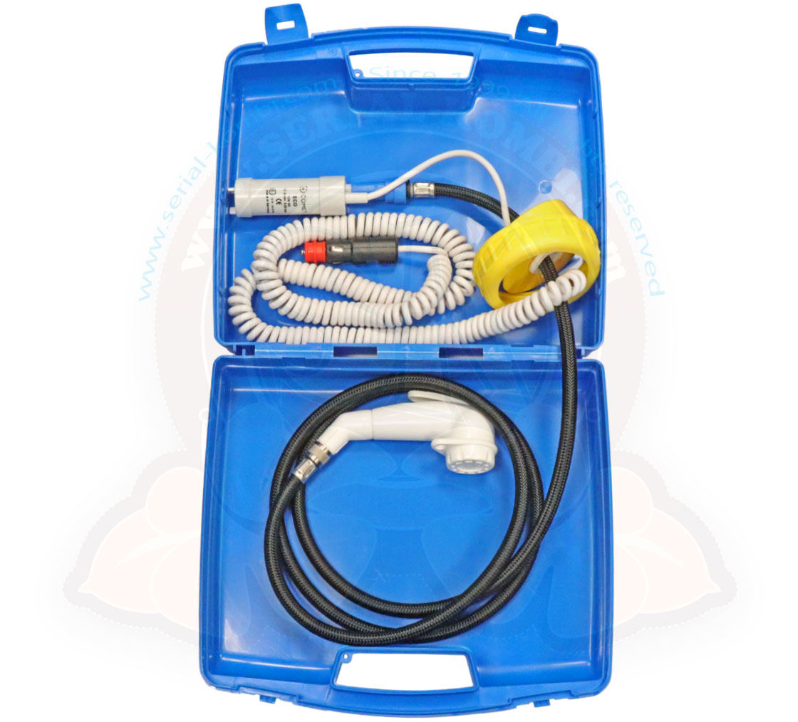 Kit de ducha portátil, 12V, con encendedor, para bidón DIN 96 (bomba-pomo-manguera)