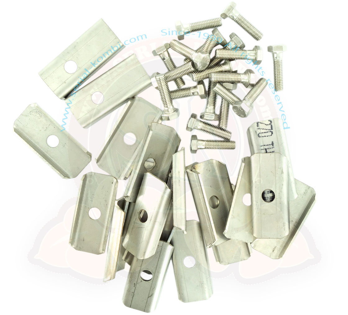 Kit de fijación de la carrocería al chasis, acero inoxidable, 20 tornillos (sin punta) + 20 placas (2 más largas) Escarabajo 8/1955-12/1959