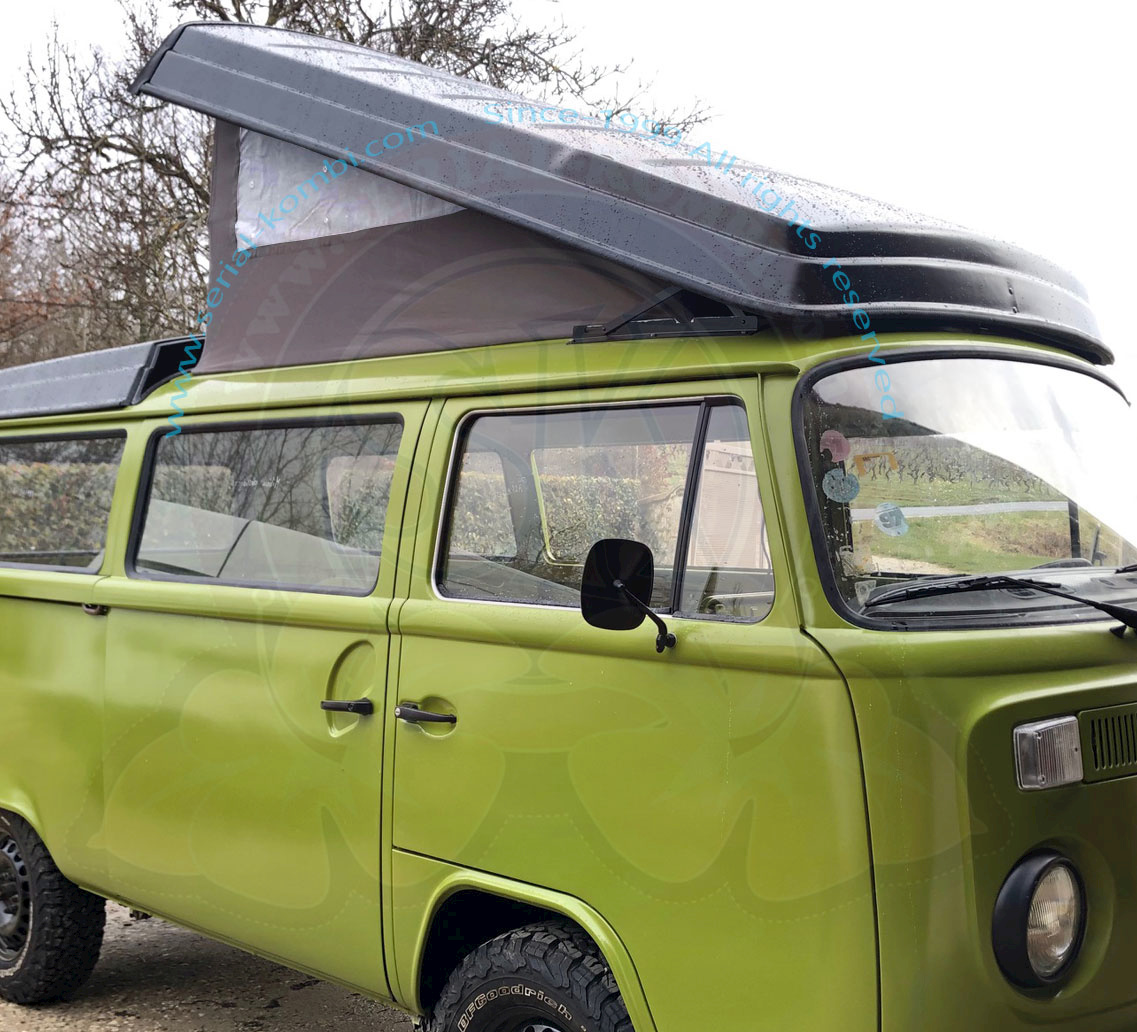 Color beige, como la Westfalia original, con 3 ventanas y mosquitera.