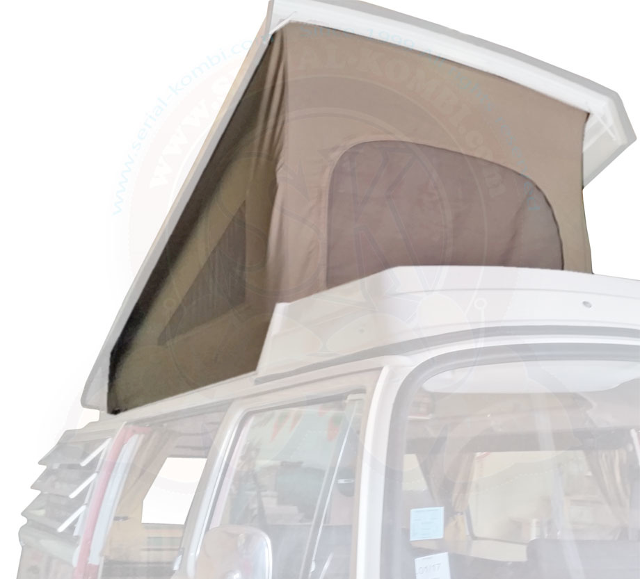 Color beige, como la Westfalia original, con 3 ventanas y mosquitera.