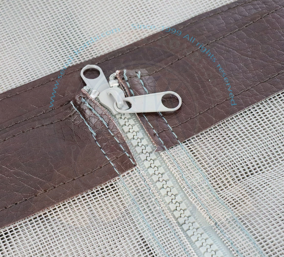 Mosquitera de puerta corredera con bordes marrones, apertura con cierre 8/1963-7/1967