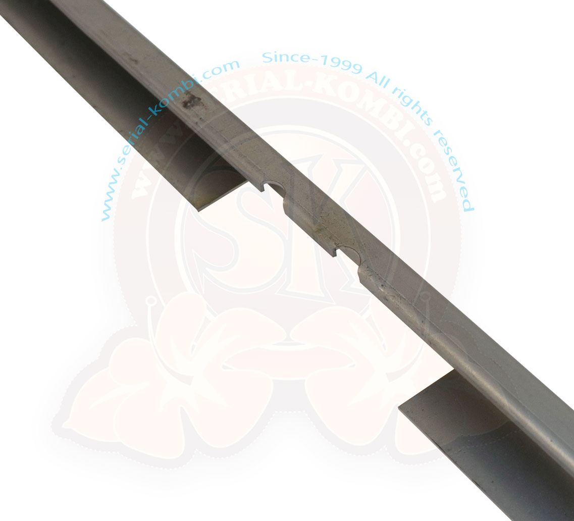 Este es el canal de sellado que se suelda por puntos al pilar A y mantiene el sello de la puerta delantera en su lugar.