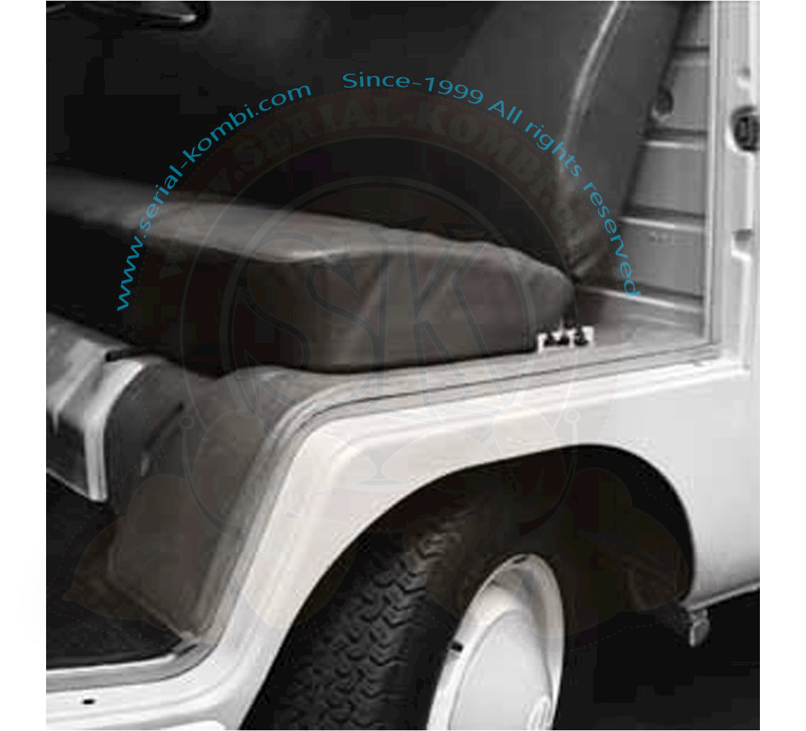 Revestimiento en caucho negro y goma espuma insonorisante, sobre pasaje de rueda y debajo del asiento delantero 12/1962-7/1967