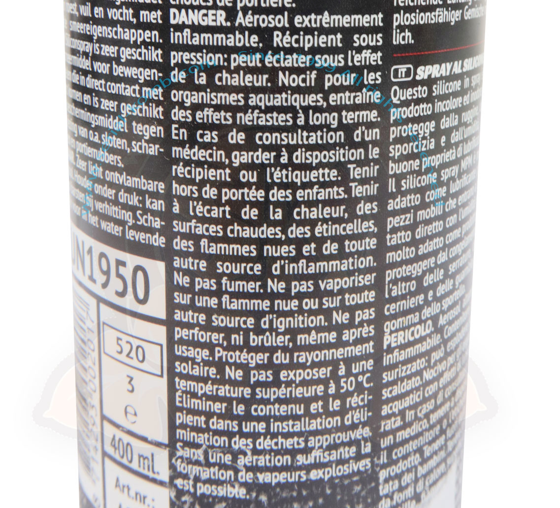 Este producto incoloro e inodoro, protege contra el herrumbre, suciedad y humedad. MPM SiliconSpray lubrica todas las partes mobiles expuestas a la humedad y el hielo como: cerraduras(esclusas), bisagras y juntas de las puertas.
