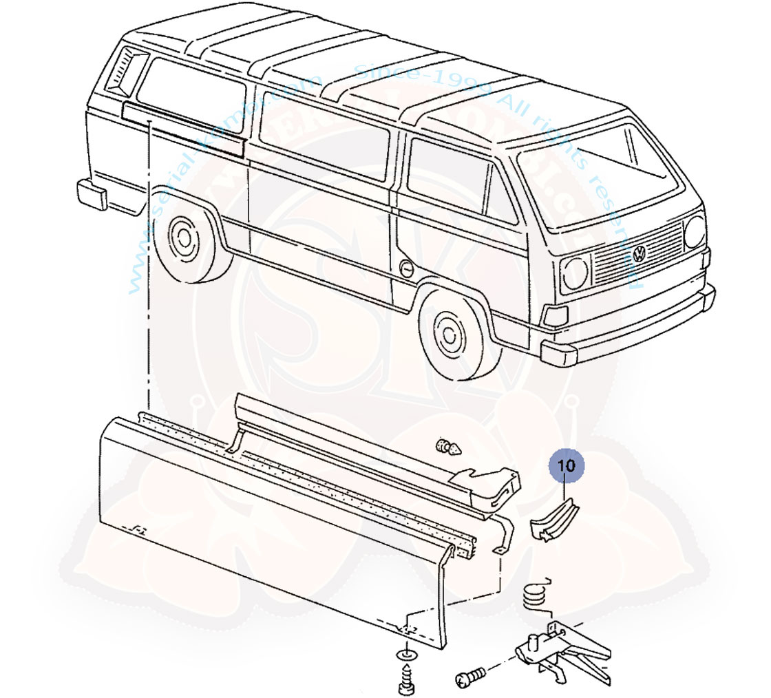 Tope de apertura de la puerta corrediza en el carril guía, 5/1979-7/1992