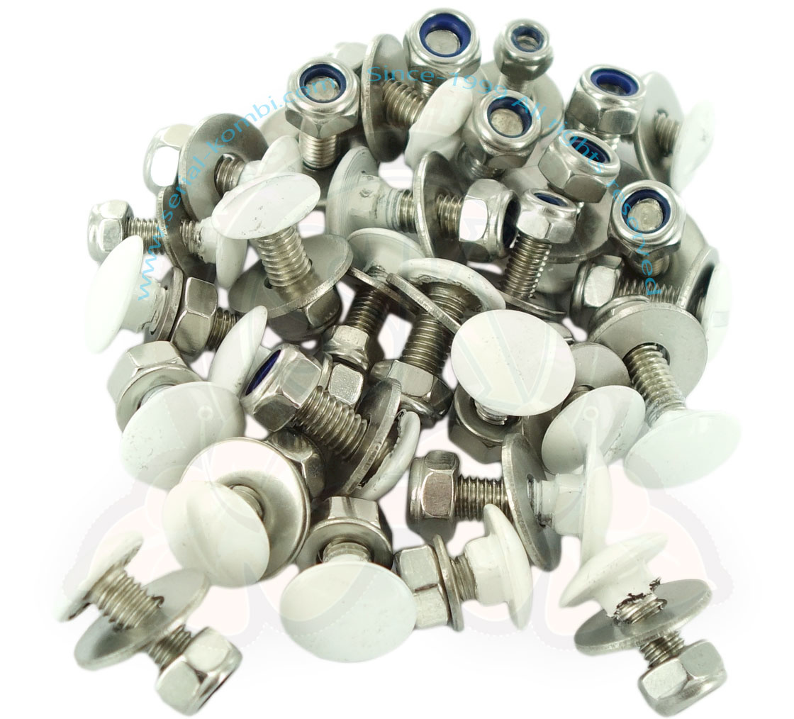 El kit incluye un juego de tornillos de acero inoxidable de color blanco para el techo elevable y el maletero de la VW T3 / T25 Westfalia.