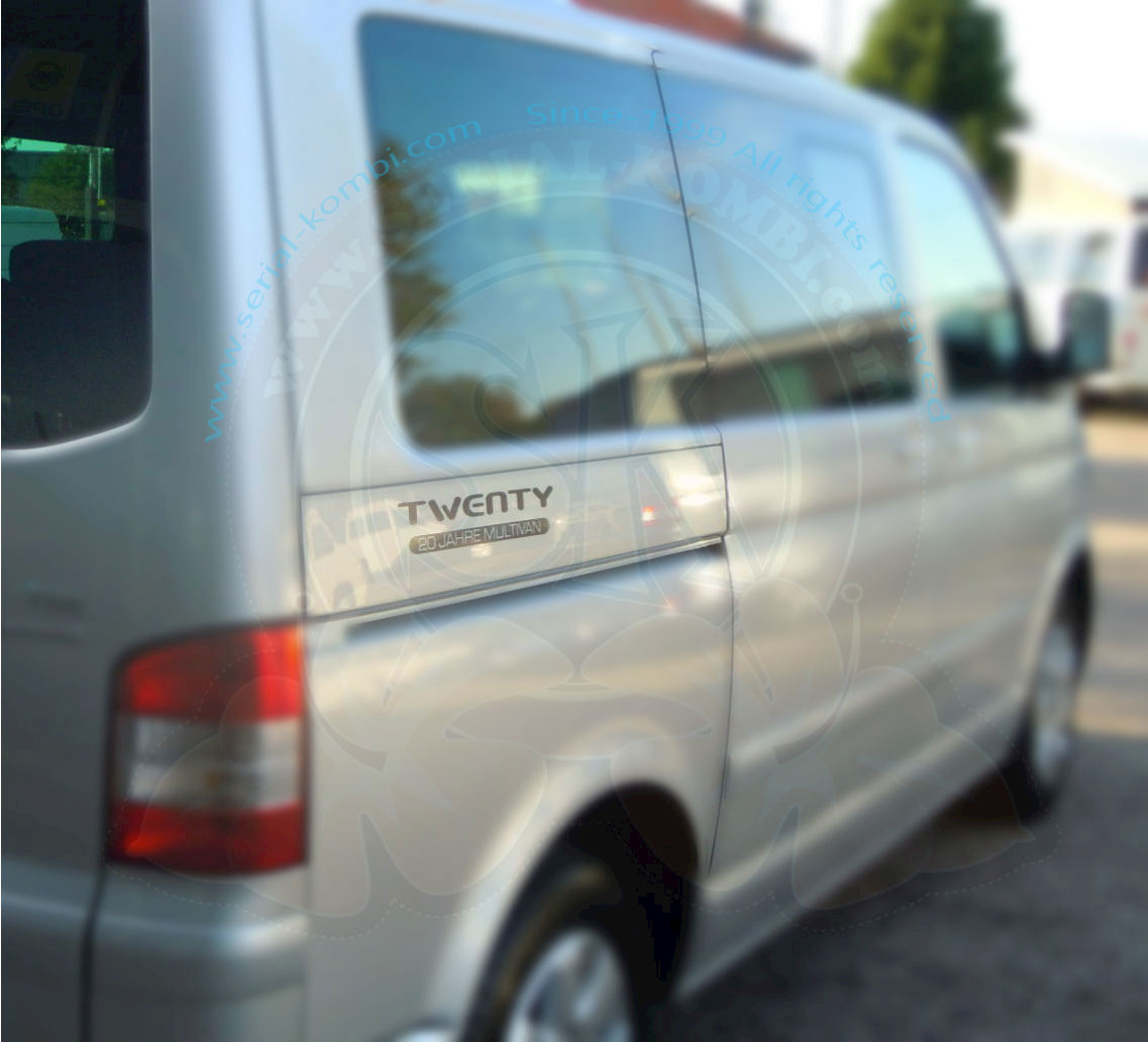 Autocollant latéral  » TWENTY 20 Jahre Multivan  » T5 4/2003-8/2015 Multivan – Argent/Diamant (foncé)