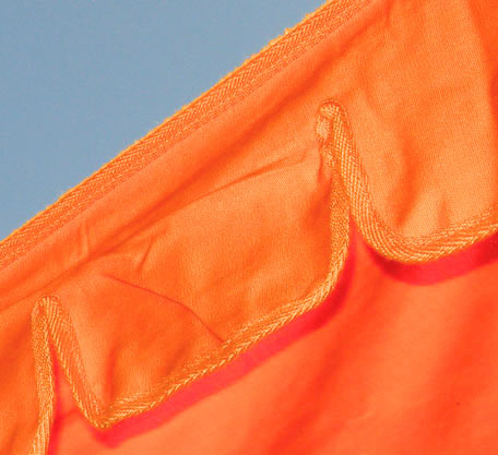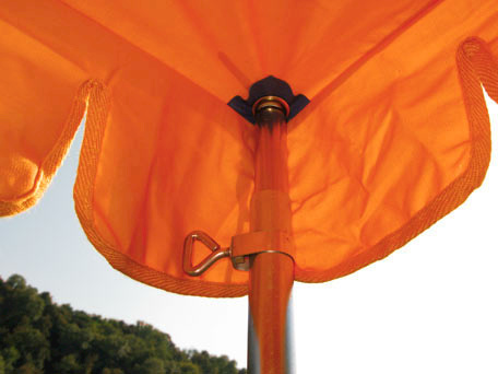 La toile est maintenue par 3 piquets réglables en hauteur, renforts cousus au niveau des piquets. Couleur Orange.
