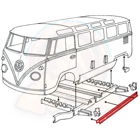 Bas de caisse intérieur sous plancher (entre les supports de cric) 1950-7/1967 – Gauche ou droite