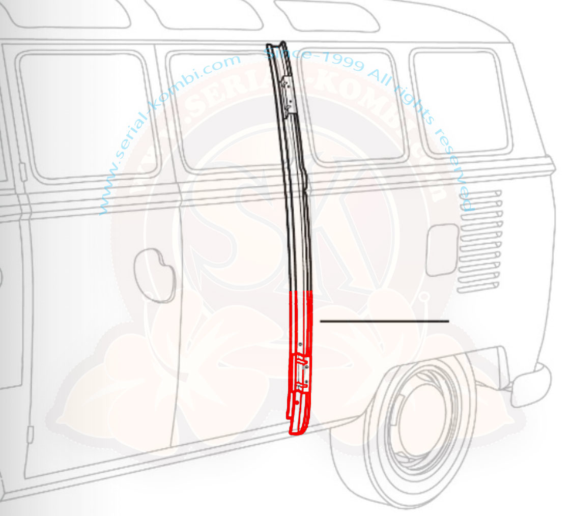 Section de réparation intérieure de 370 mm de haut pour le pilier C situé derrière les portes battantes du côté gauche du véhicule. Avec plaque de fixation de charnière inférieure. Convient aux véhicules à conduite à droite (RHD) ou à double porte.