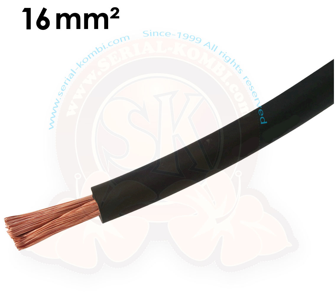 Câble de démarrage. Section de câble : 16 mm². Gaine externe en PVC. Couleur : Noir. Diamètre extérieur : 7mm.