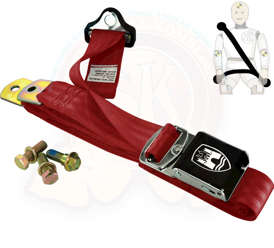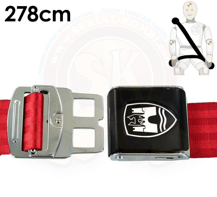 Ceinture 3 points rouge ouverture type aviation boucle noire avec logo Wolfsburg