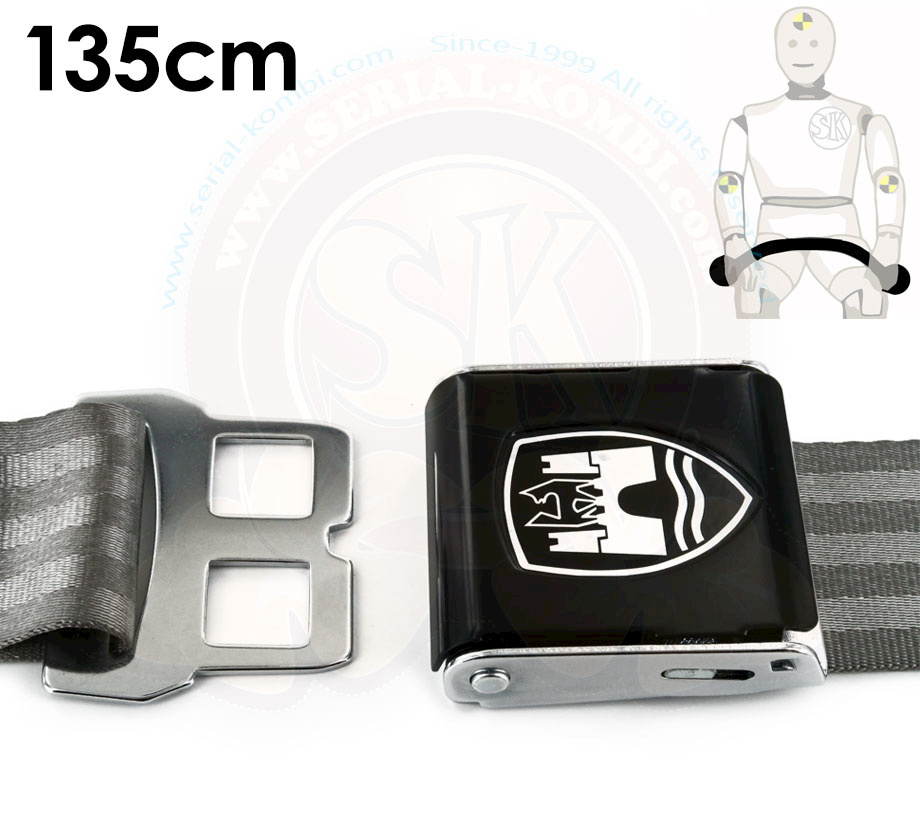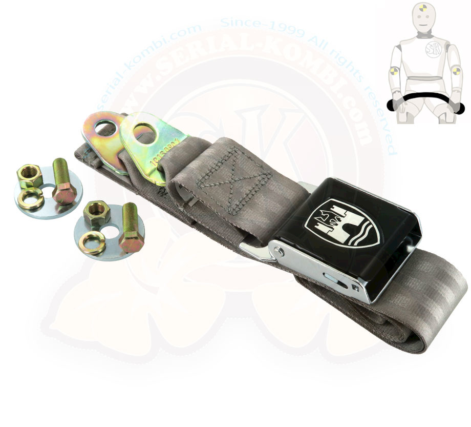 Ceinture ventrale grise ouverture type aviation avec logo château de Wolfsburg, boucle noire