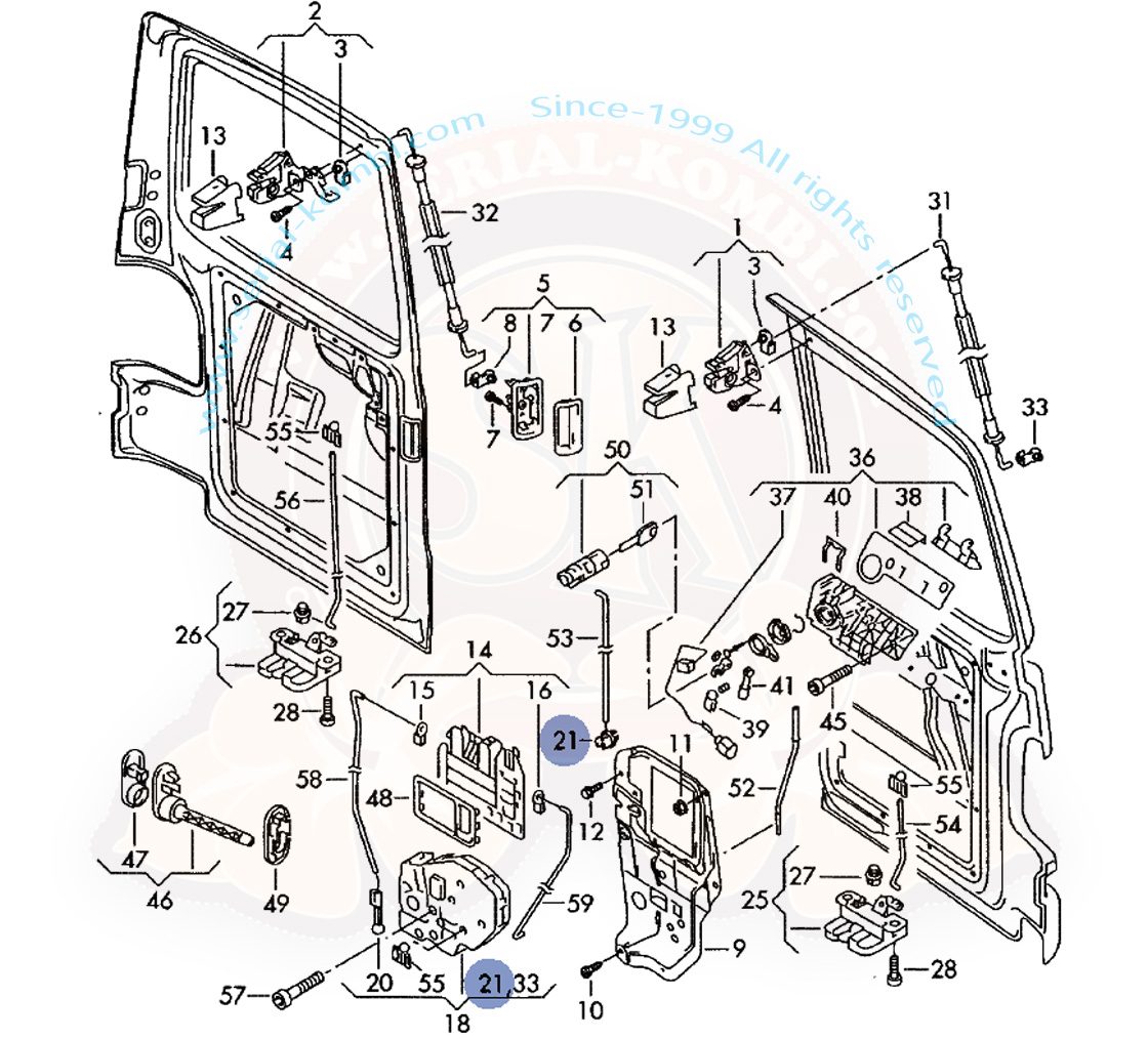 Clip sur tringle de mécanisme de verrouillage de double porte arrière et hayon T5 4/2003-8/2015, T6 9/2015-
