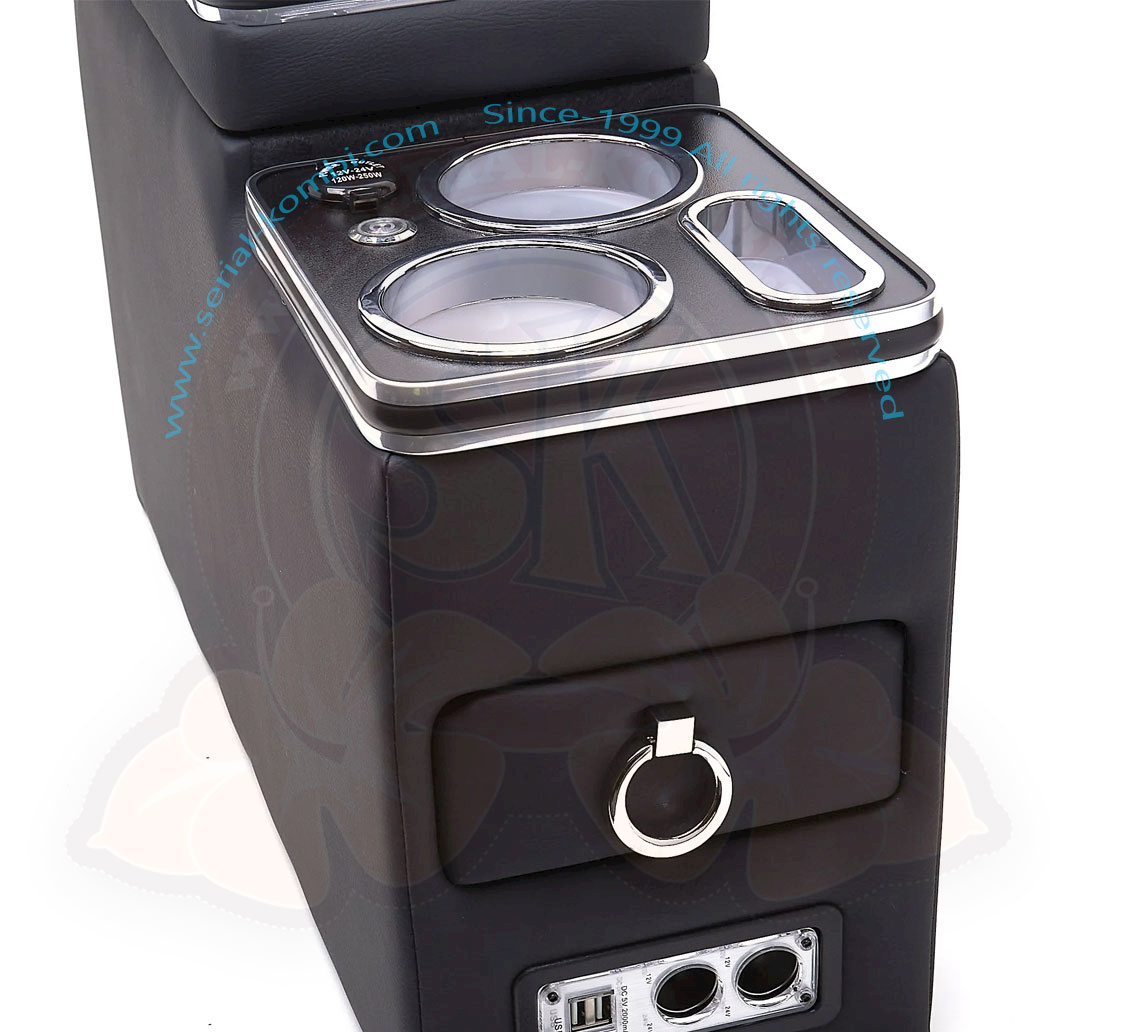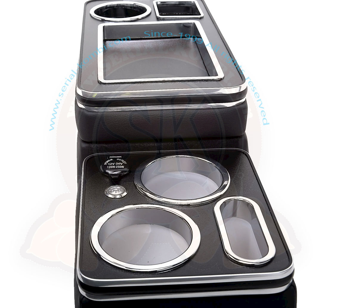 Cette console centrale est idéale pour ranger et organiser les objets personnels tels que les téléphones, la monnaie, les boissons et bien plus encore. Le couvercle principal coulisse vers l’arrière pour révéler une poche profonde pour le rangement des gros objets personnels et un tiroir à l’avant pour les petits objets. Finition en similicuir noir avec garniture chromée.
