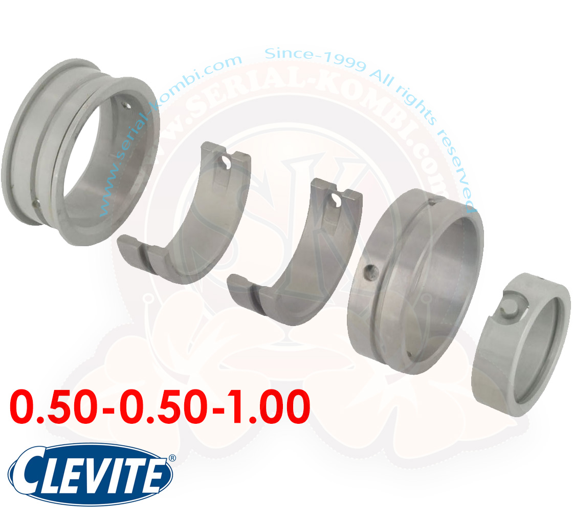 Coussinets de vilebrequin côte réparation, carter 0.5, vilebrequin 0.5, butée 1.0 (21mm), Mahle Clevite, 1200cc-1500cc 8/1959-7/1967