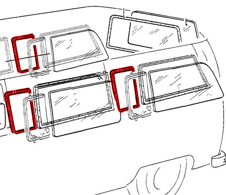 Joint de déflecteur de côté, central ou arriere, gauche ou droit 8/1967-7/1979