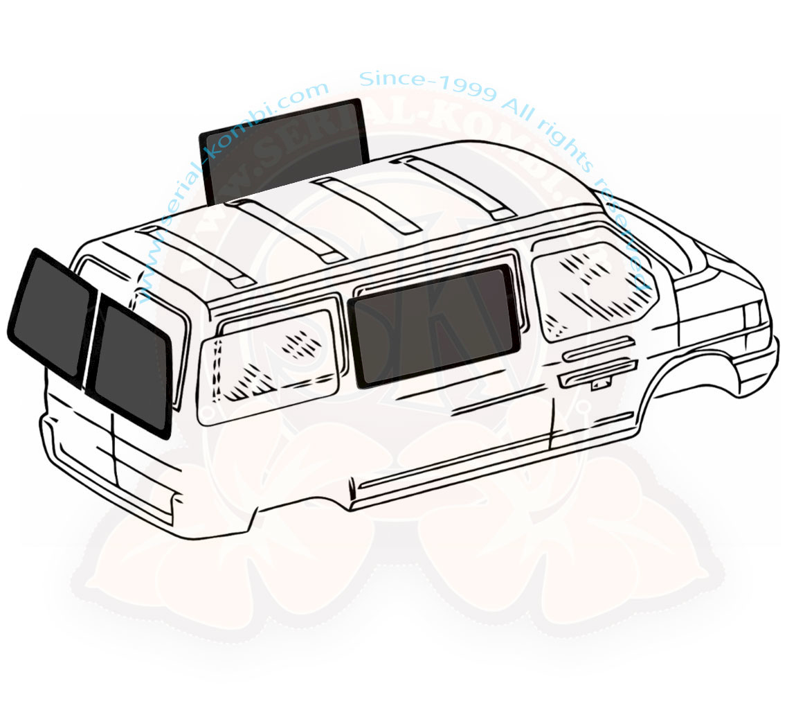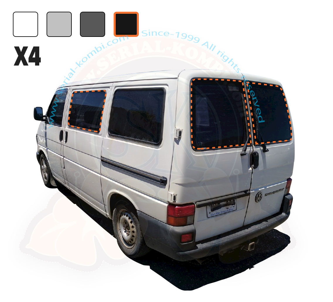 Kit de 4 vitres teintées (82-86%) pour modèle tôlé ou vitré à l’origine T4 9/1990-6/2003 avec portes battantes