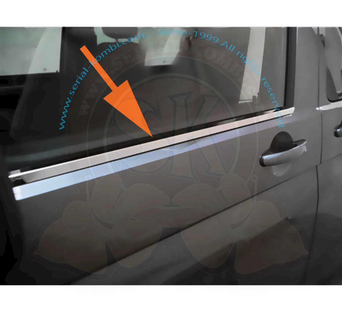 Moulures d’embellissement en inox poli, bas de vitres de portes avant T5 4/2003-8/2015 (la paire)