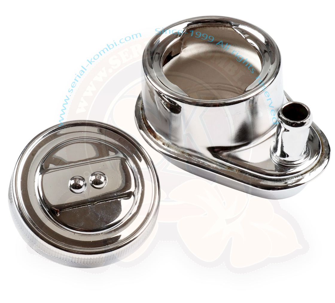 Reniflard d’huile sans tube d’écoulement, chromé avec bouchon chromé, 1200cc-1500cc 8/1959-7/1967