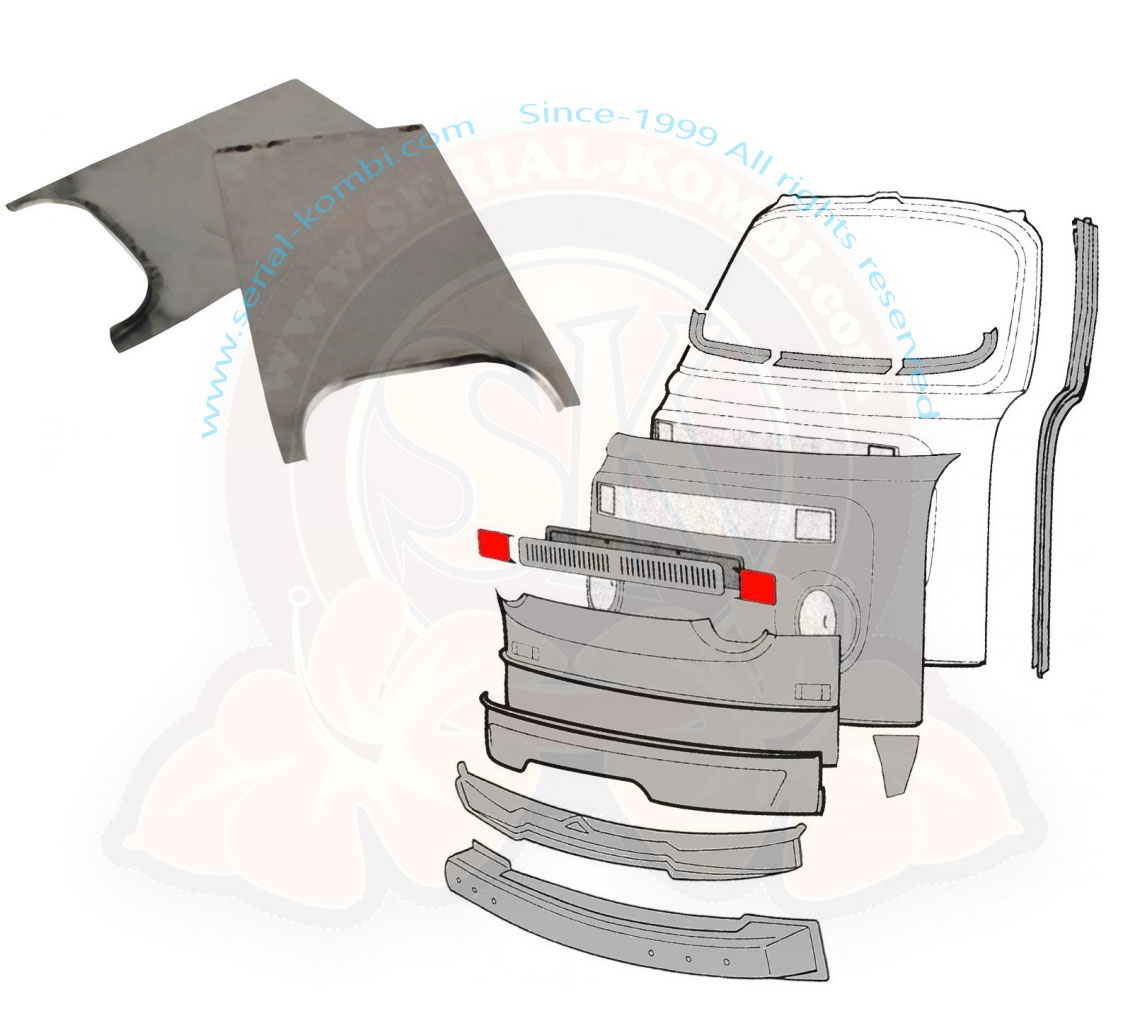 Ces tôles vous permettent de boucher les ouvertures des clignotants de 1973-79 qui se trouvent en haut afin de les mettre en bas, pour vieillir votre véhicule en 1968-72.