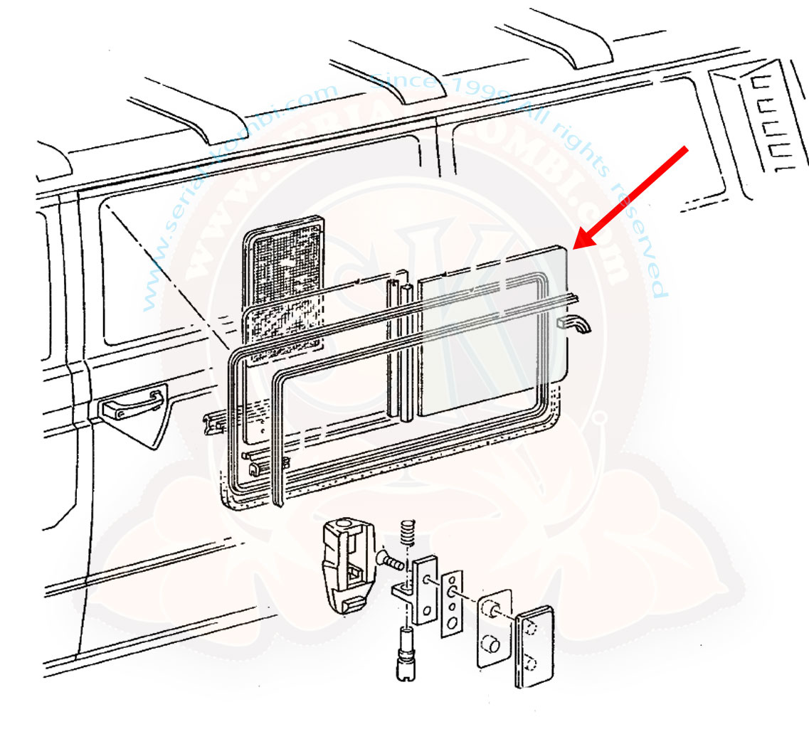 Vitre latérale fixe pour vitre coulissante sur porte coulissante avec moustiquaire 352×399,5 mm 5/1979-7/1984