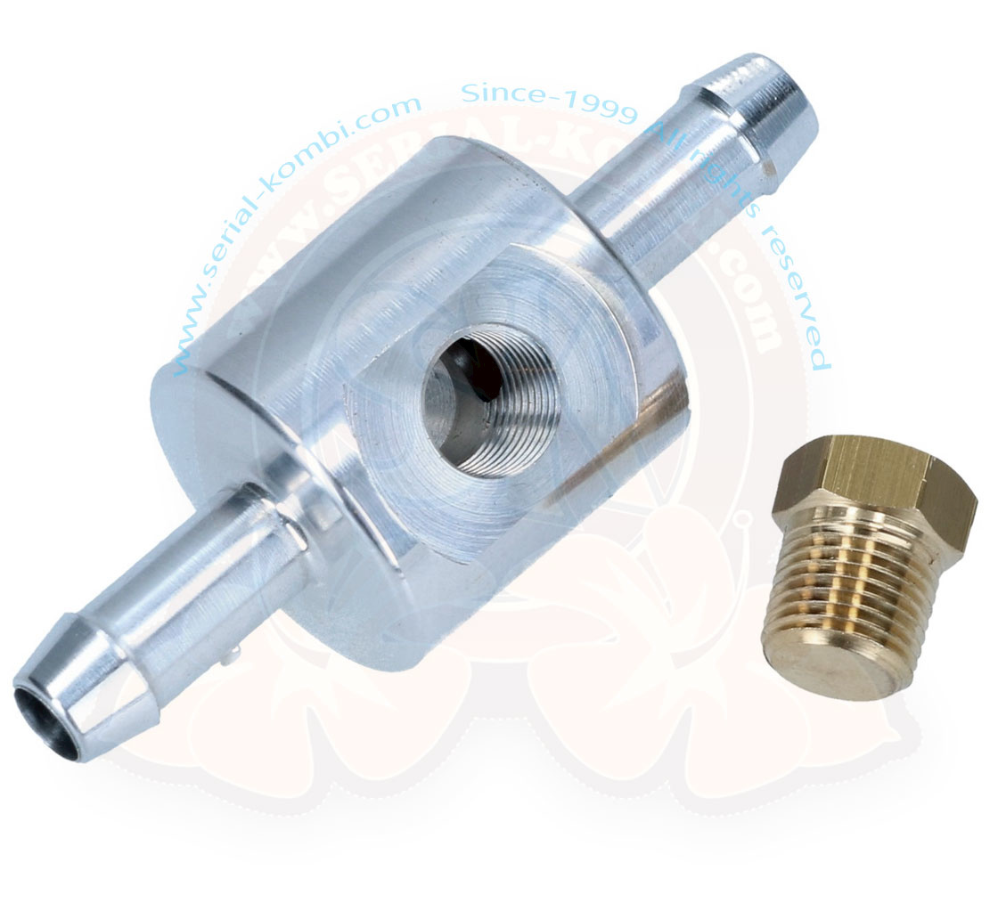 Una pressione del carburante costante e corretta consente al motore di funzionare in modo ottimale. Questo adattatore può essere inserito lungo al condotto di alimentazione ed è realizzato con due terminali fissi da 8 mm.