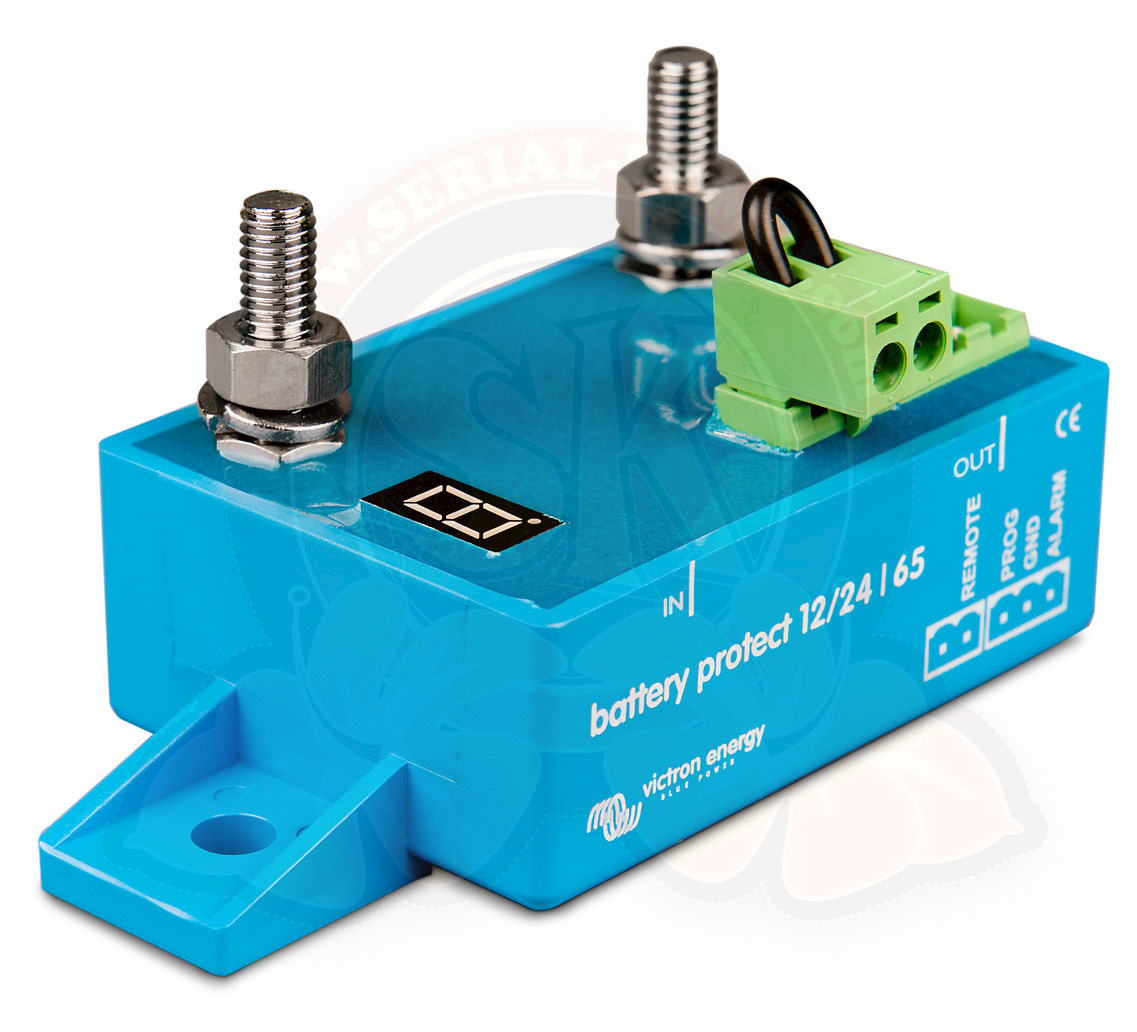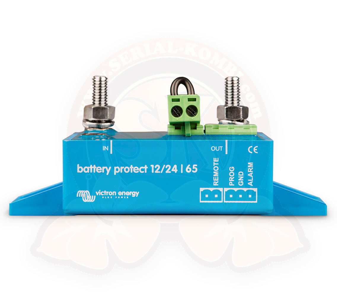 Il Battery Protect è un dispositivo unidirezionale. Supporta la corrente in una sola direzione, pertanto corrente verso un carico oppure corrente da un caricabatterie, ma non entrambe le correnti contemporaneamente. La corrente, inoltre, può fluire solo dal morsetto Batteria al morsetto Carico. Se si dovesse usare con un carico, la batteria si collega al morsetto Batteria e, in caso di utilizzo con un caricabatterie, quest’ultimo si collega al morsetto Batteria.