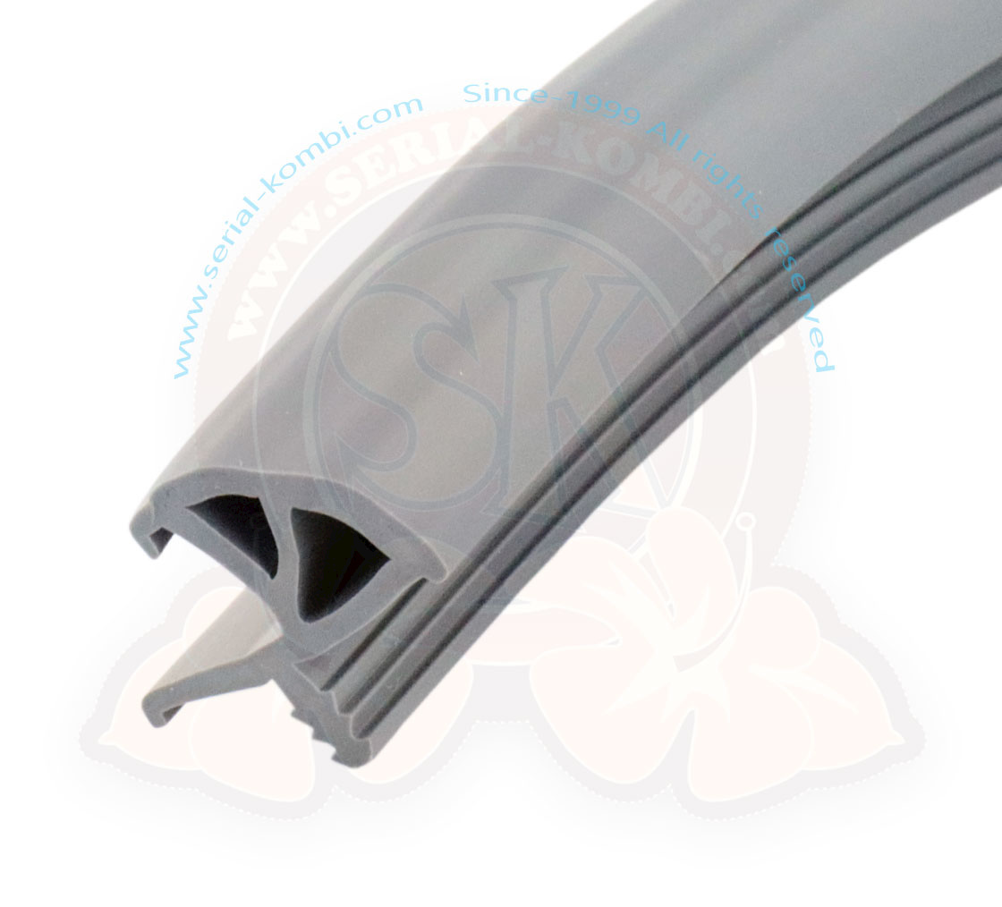 Bordo in plastica, profilo con rientro angolo arrotondato per mettere un’anta sulla parte piatta, 15mm, Grigio, Venduto al metro