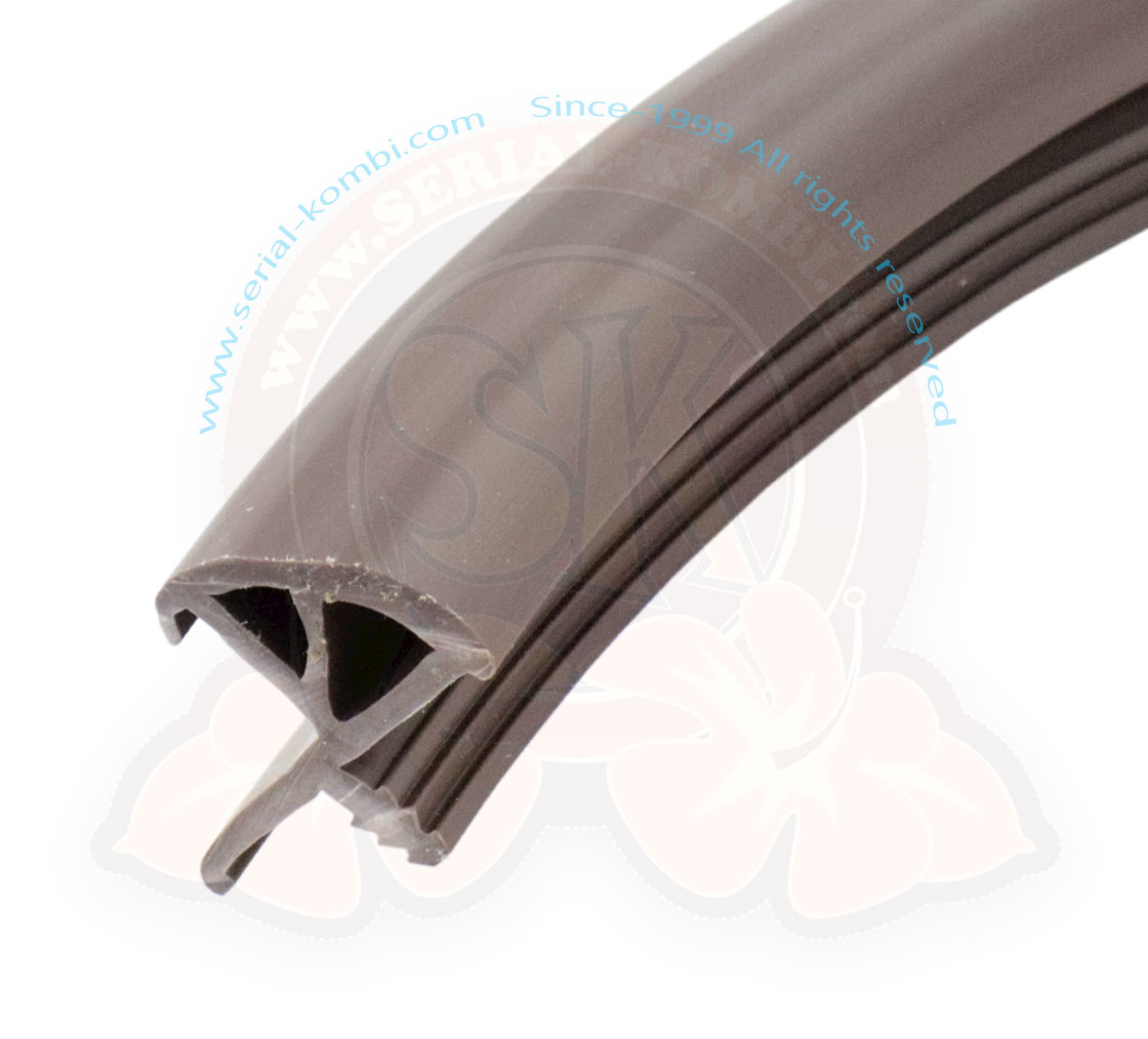 Bordo in plastica, profilo con rientro angolo arrotondato per mettere un’anta sulla parte piatta, 15mm, Marrone, Venduto al metro