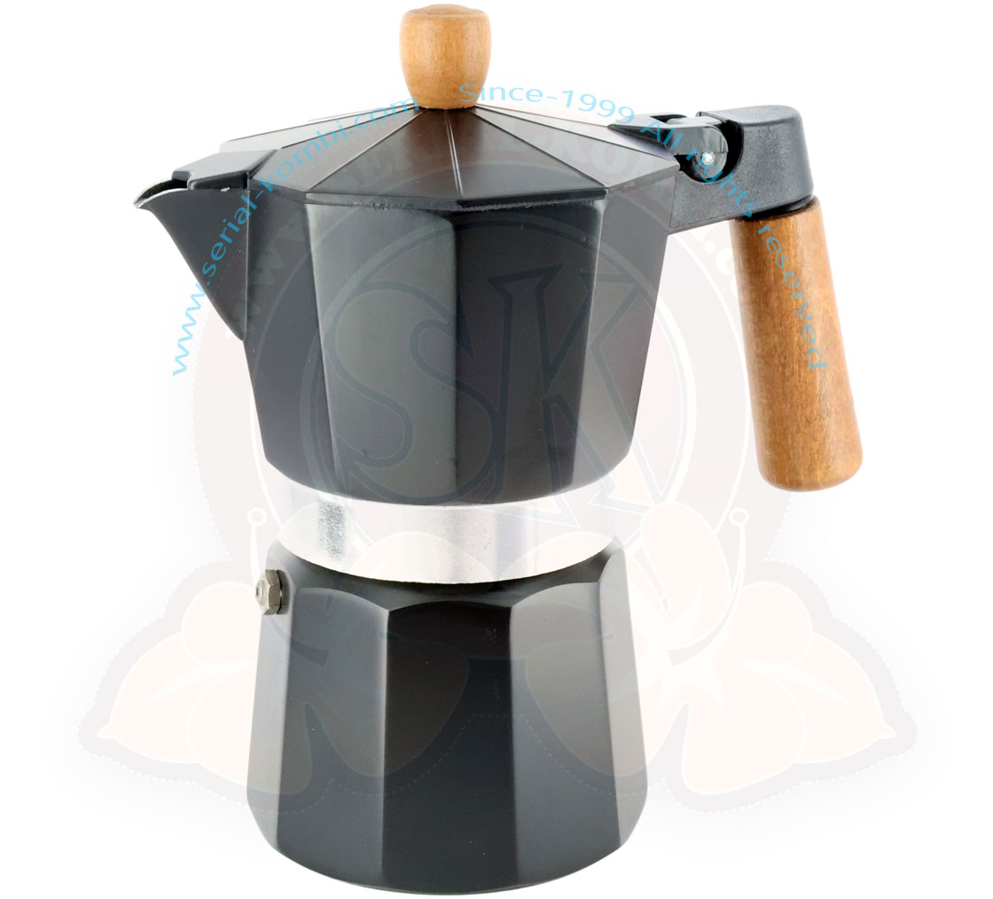 Caffettiera moka in alluminio con manico in legno, espresso 6 tazze, 0,3 litri, nera, HOLIDAY TRAVEL