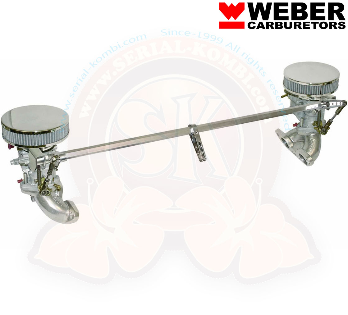 Il kit comprende 2 carburatori WEBER 34 ICT Made in Spain, 2 collettori, 1 leveraggio EMPI, 2 filtri dell’aria (vedi foto). Venduto con guarnizioni e kit fissaggio.