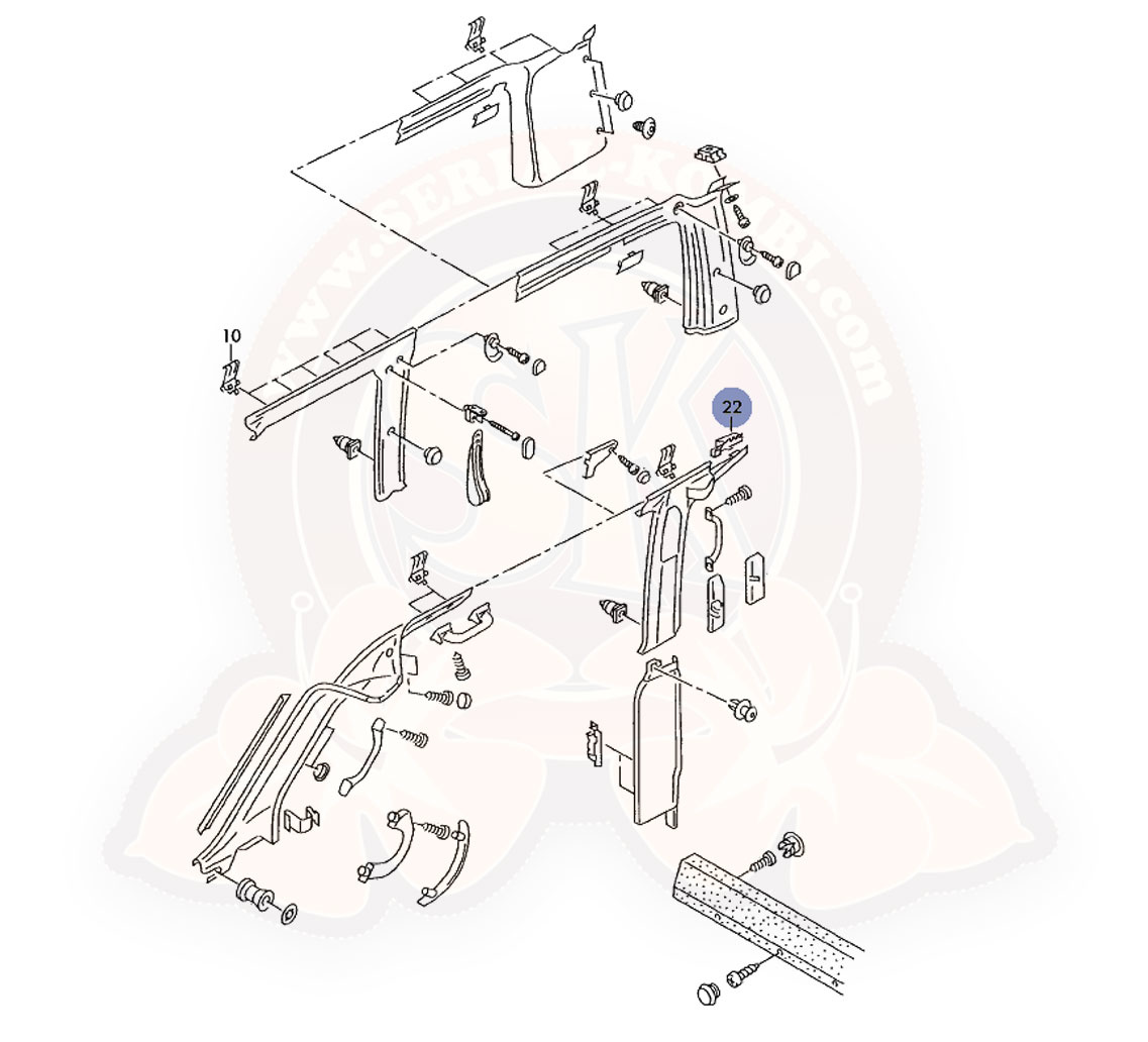 Clip per fissaggio rivestimento interno lato porta scorrevole T4 1/1996-6/2003