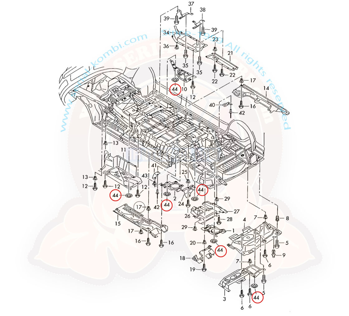 Clips per fissaggio protezioni sotto scocca, 4 pezzi, T5 4/2003-8/2015, T6 9/2015-