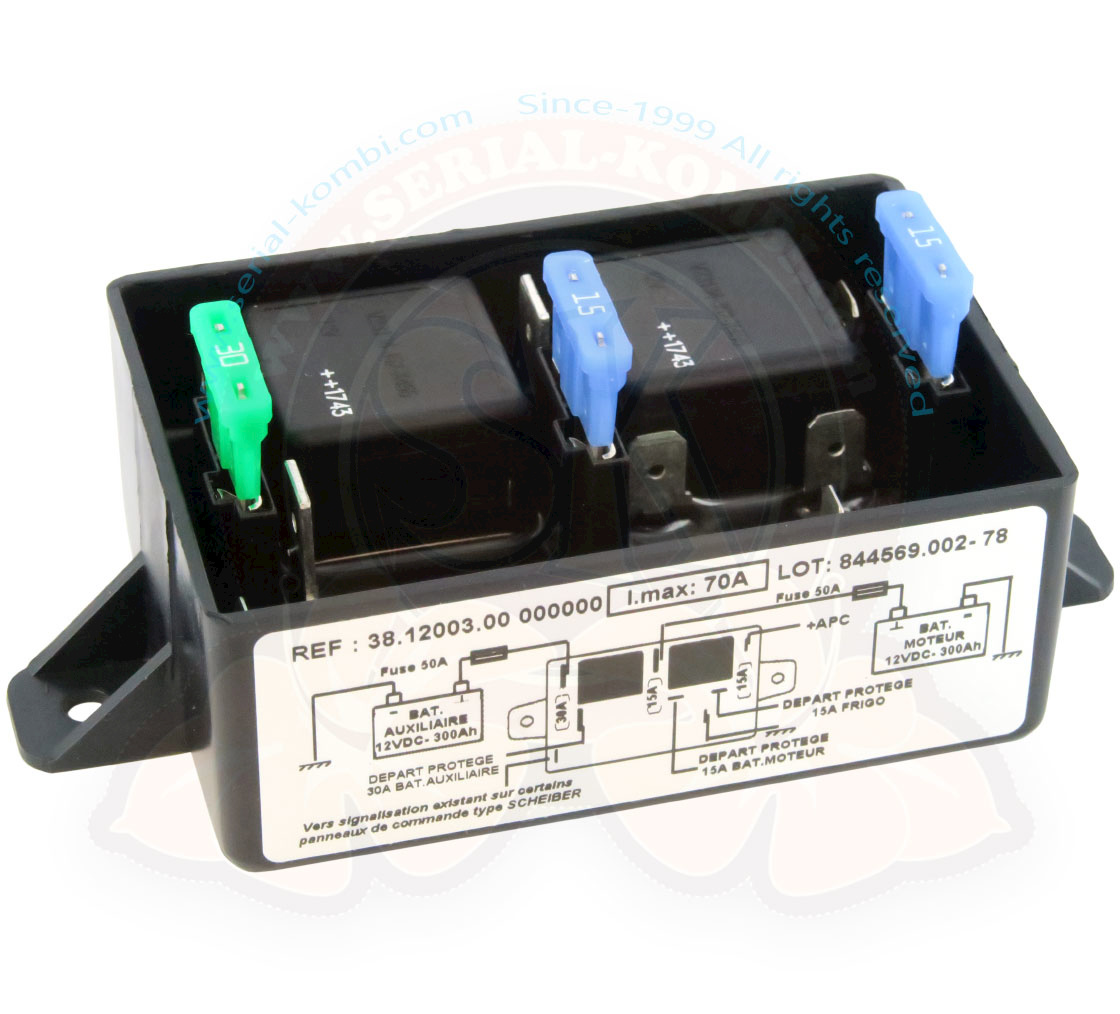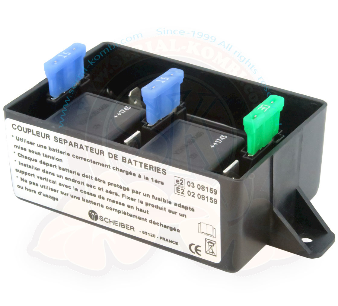 L’accoppiatore separatore a doppio effetto consente di caricare la batteria del motore quando il caricabatterie è collegato a 230 V e la batteria di servizio è carica. Capacità massima 300Ah, Corrente di carica massima 70A.