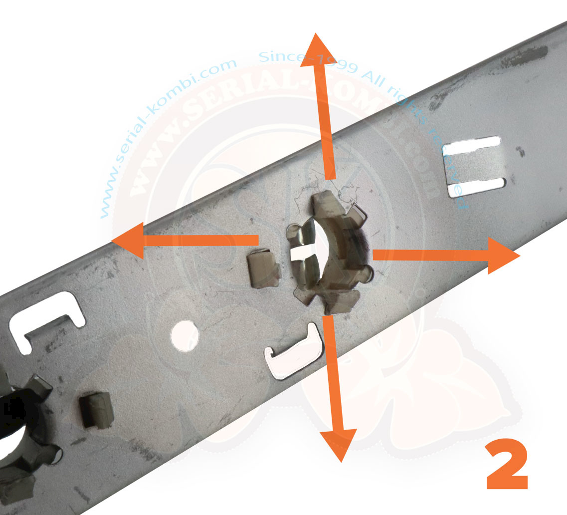 – Passo 2: stendere leggermente i rivetti di plastica con le dita