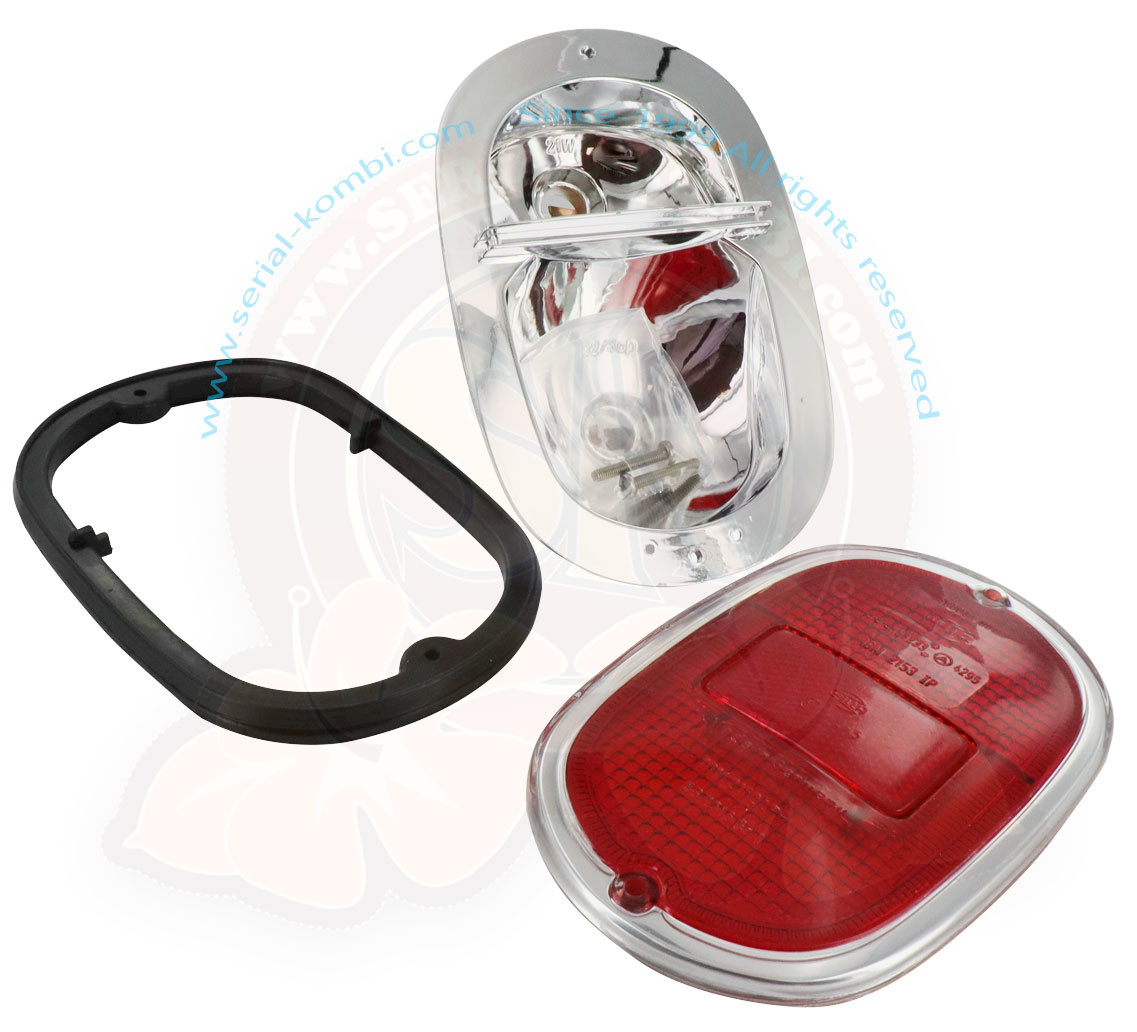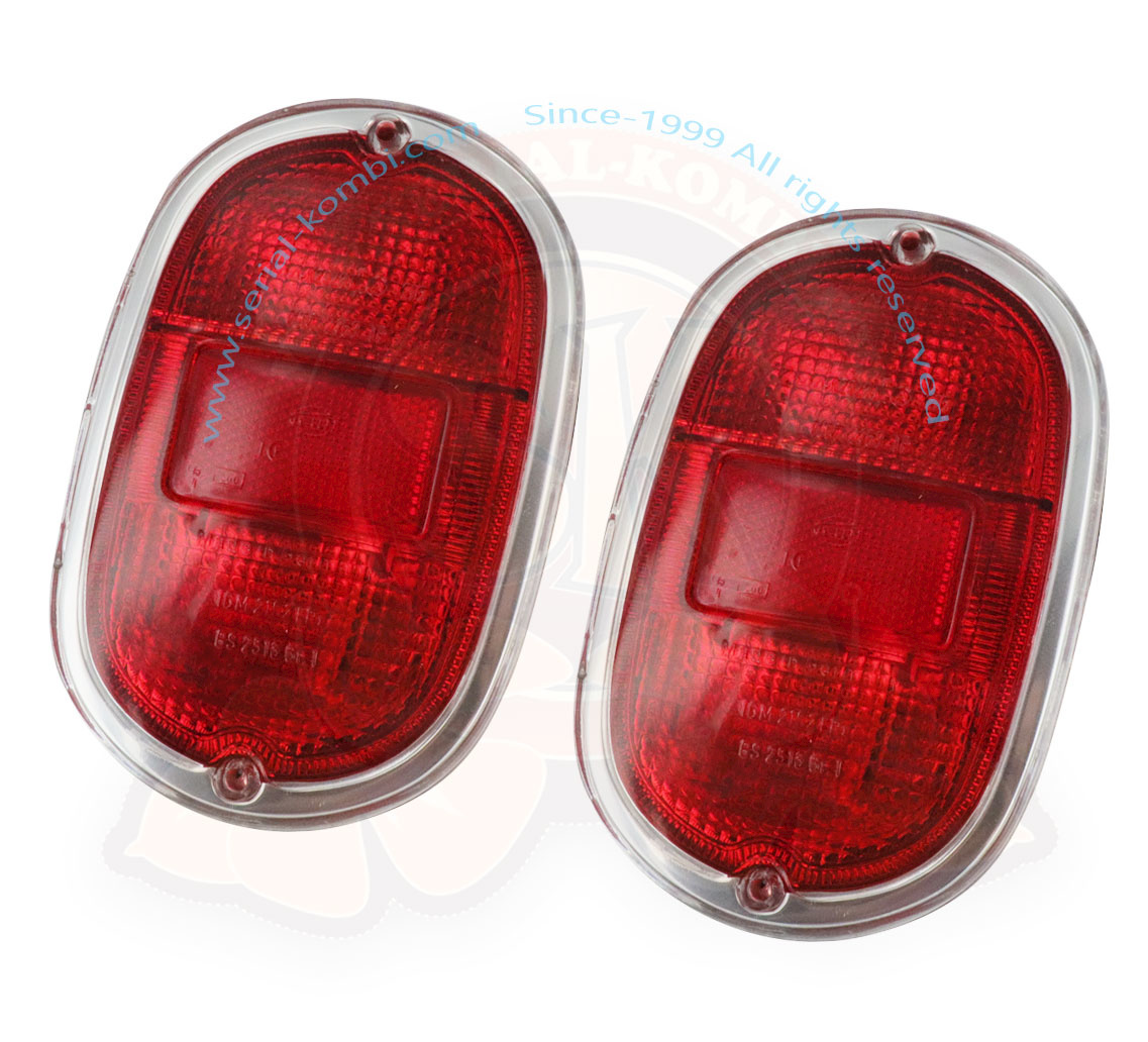 Fanali posteriori completi 8/1967-7/1971 lente cromo / rosso Hella, sede fanale europeo, viti inox e guarnizioni, omol. EU, la coppia