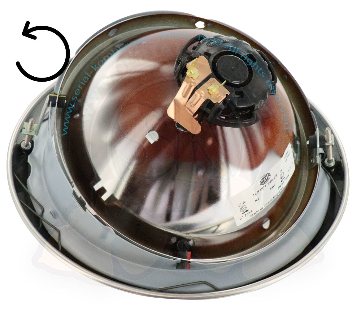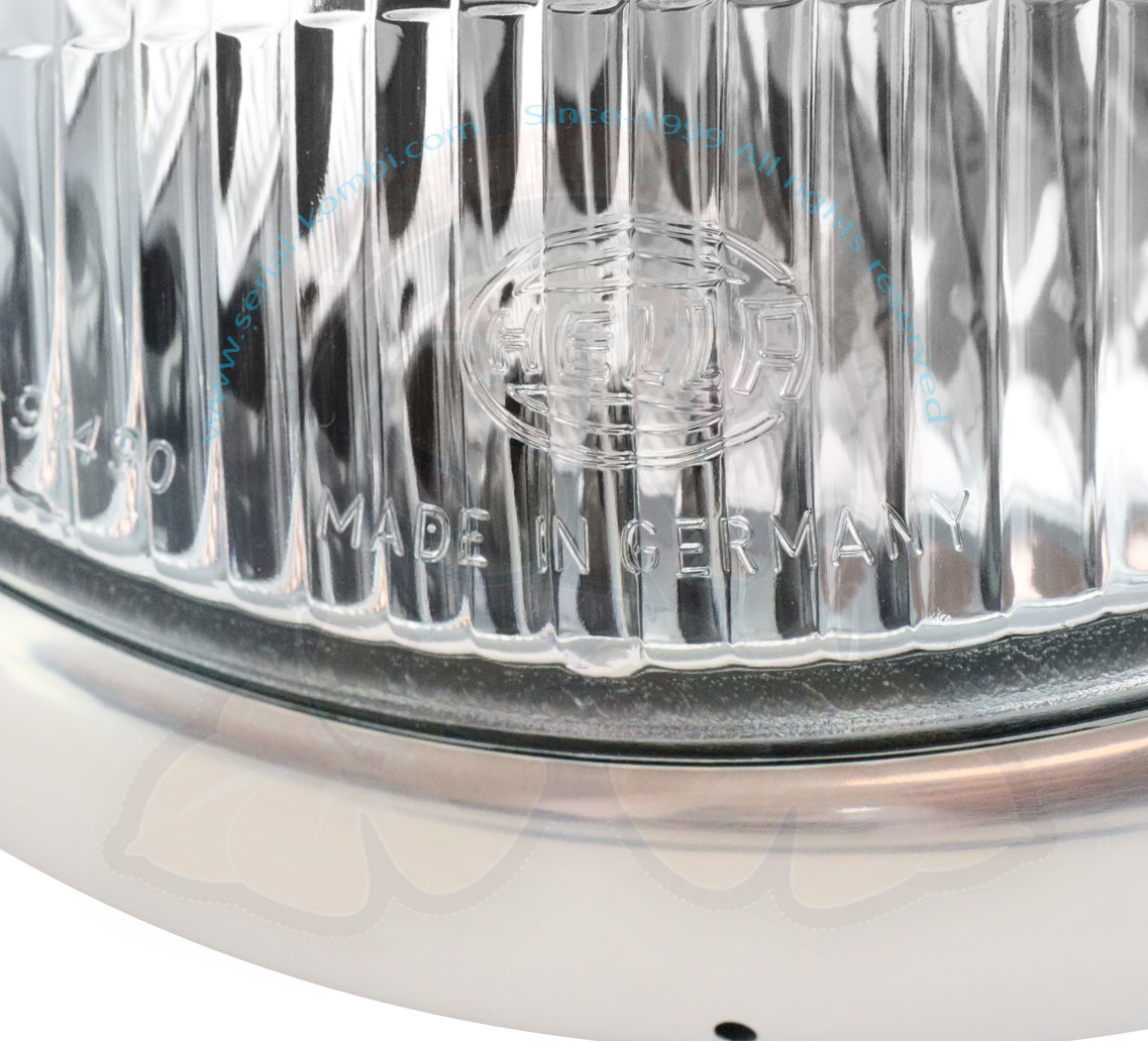 Faro completo europeo destro, originale Hella 1950-7/1967 RHD = per guida a destra