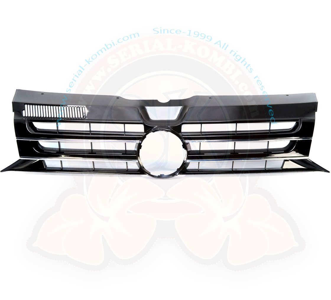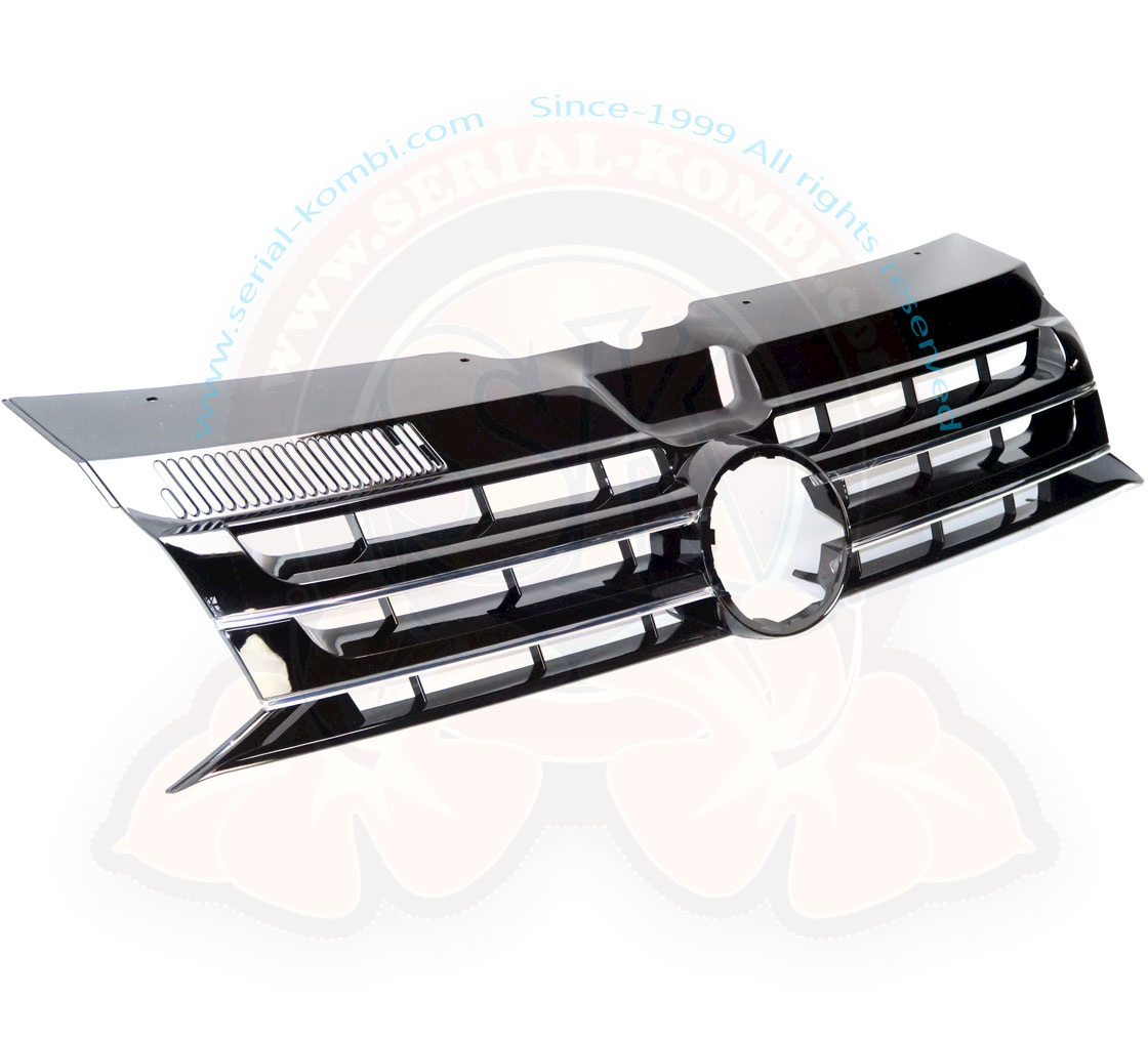 Griglia anteriore per calandra con alloggiamento per logo VW T5 12/2009-8/2015 nera lucida e cromata