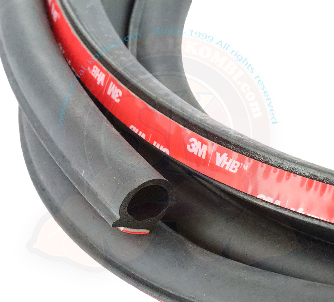 Guarnizione aggiuntiva con adesivo 3M sul retro, da montare sulle porte anteriori per ridurre rumore e polvere nella cabina del proprio T5. Venduta in lunghezza di 5 metri, sufficienti per entrambe le porte.