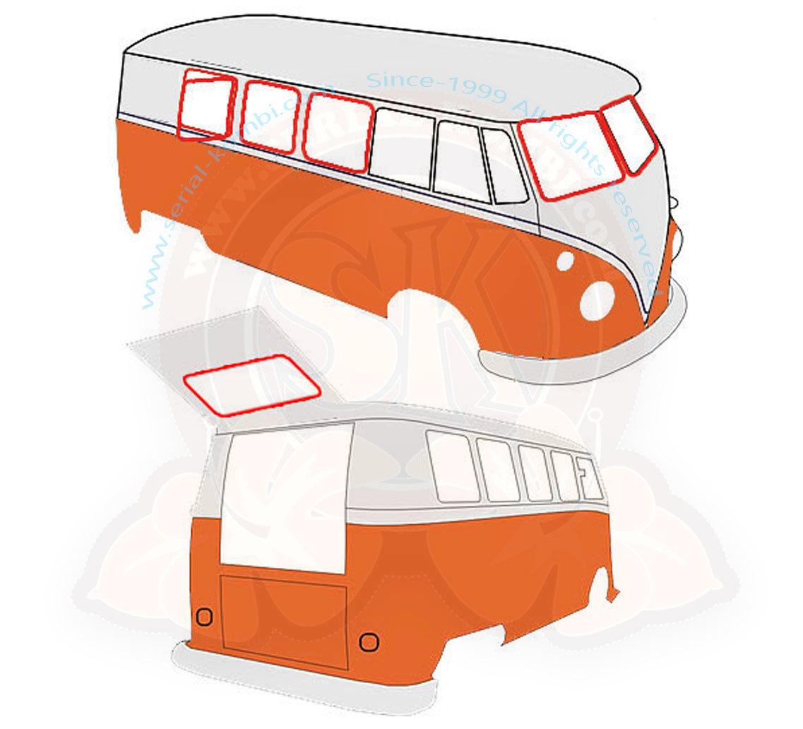 Questo kit include 2 guarnizioni del parabrezza + 1 guarnizione del lunotto posteriore + 4 guarnizioni dei vetri fissi laterali + 2 kit di guarnizioni dei vetri pop-out.